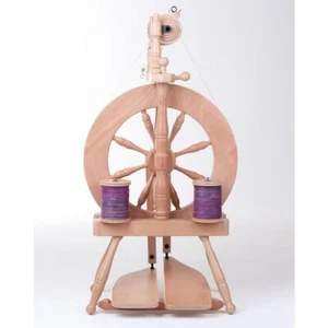 This lightweight, compact castle wheel will spin fine to medium yarn using the 4 drive ratios and bulky yarn with the optional jumbo flyer. The wheel is easy to start with double treadles that are hinged to allow a comfortable heel-toe action. Ball bearings make treadling smooth and effortless.