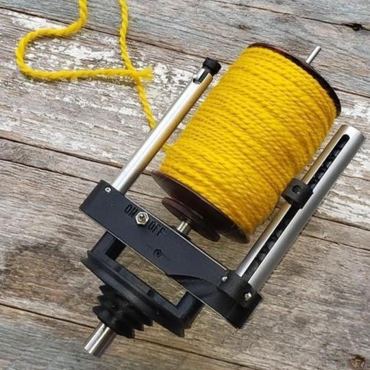 Our autowinders do not require special gear driven bobbins, oil or the need to move yarn guides at all. They are powered by two or three alkaline AAA batteries that will last for weeks to months at a time. We know you're going to love it:)